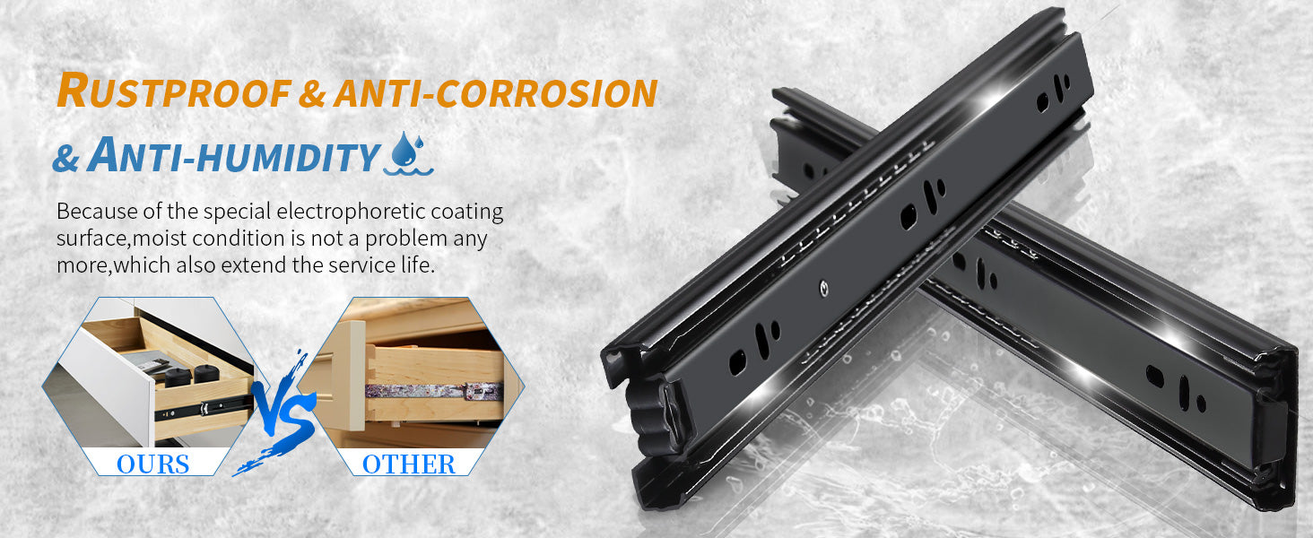 - 【Anti-rust & Smooth work 】The anti-rust ability and oxidation resistance of our slides is superior to the others because of the special electrophoretic coating surface treatment; With dual industrial grade bearing ball inside,the drawers slide smoothly even though carrying heavy items; With a rubber crash pad on,which is a wear-resisting and impact-resistant device,the drawers slide quietly without collision noise.