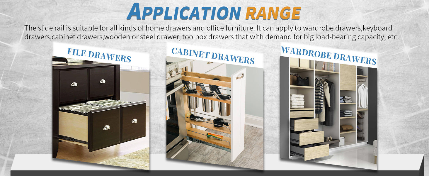 - 【Application range】 The slide rail is suitable for all kinds of home drawers and office furniture,It can apply to wardrobe drawers,keyboard drawers,cabinet drawers,wooden or steel drawer,toolbox drawers that with demand for big load-bearing capacity, etc. Our motto is “Use quality slides,live quality life” ,besides the quality, YENUO also focused on after-sales service,any quality or installing problem please feel free to contact us.