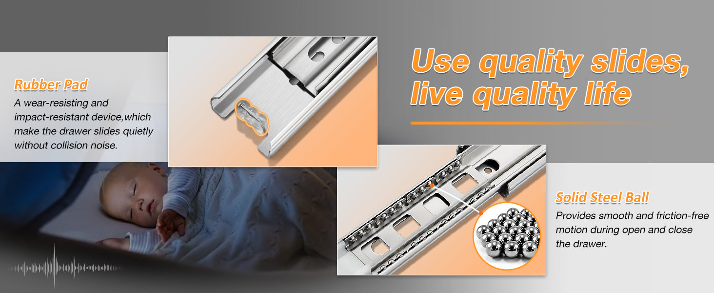 - 【Double Anti-rust & Quiet sliding】High quality stainless steel, which is with strong corrosion resistance and the best anti-rust ability, make our slides perfect for your home ; Industrial grade solid steel ball inside,which not only minimize frictional resistance to keep the sliding more smooth and quiet,and also effectively increase the load-carrying capacity of slides.