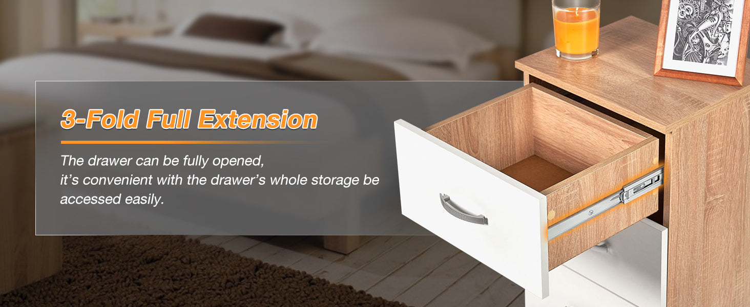 - 【Detachable & 3-Fold full extension】There is a White plastic buckle on the back of the slide rail, the 3rd track(the narrowest section) can be separated by pressing it, which mean the drawer can be installed and detached by your will easily; 3-Fold full extension, the drawer can be fully opened, it’s convenient with the whole storage be accessed easily.