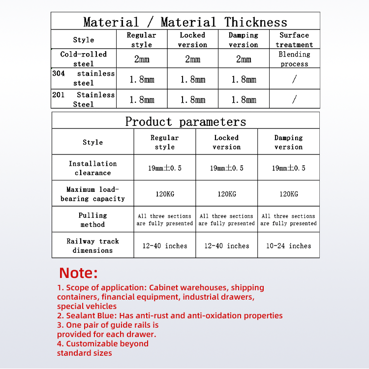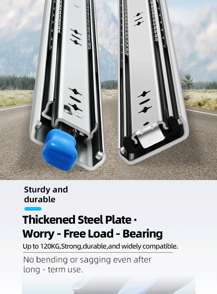 - 【MAXIMUM LOAD CAPACITY:250 lb】The slides is made of 2mm thickness high-density Q235 cold-rolled steel plate( tensile strength>400MPa),it will keep your drawers stable and safe even carrying up to 250 lb heavy weight items,which take opening and closing test 150,000 times under full loaded without damage. Note:The shorter the slide,the heavier the weight load.