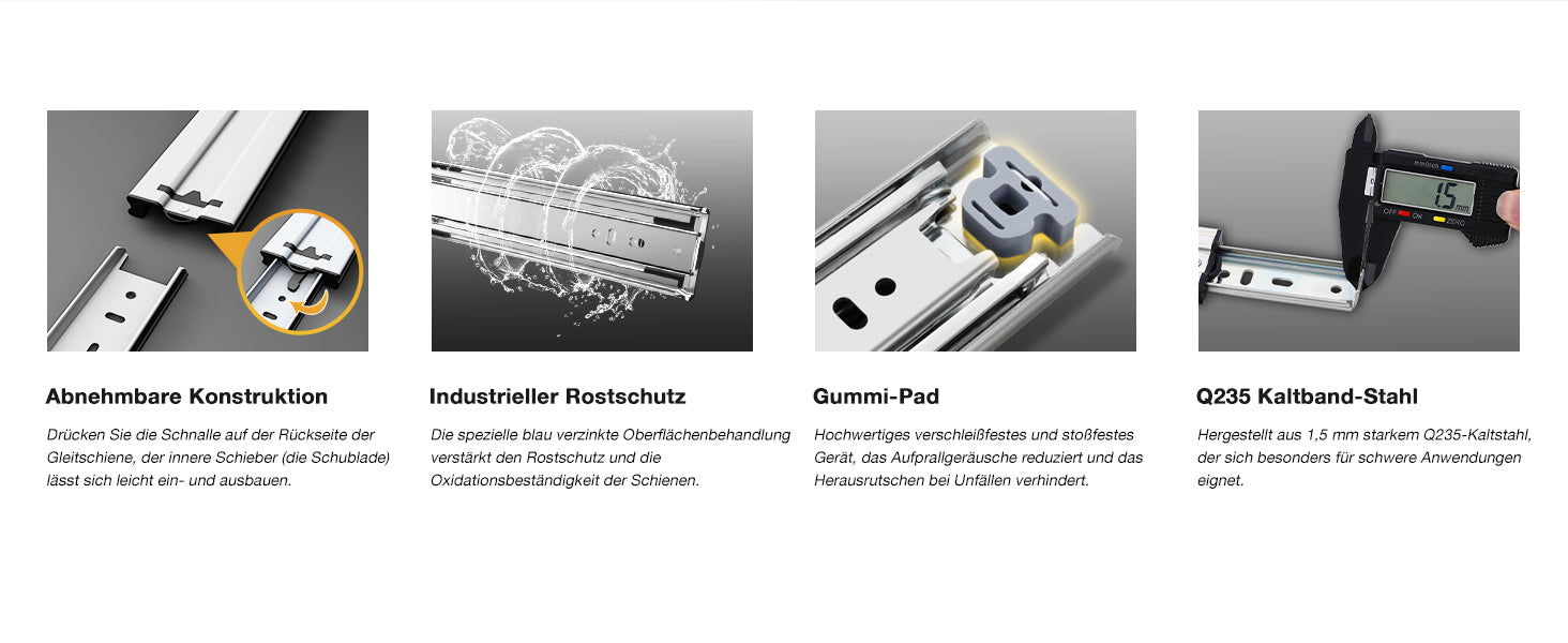 - 【Anti-rust & Smooth work 】The anti-rust ability and oxidation resistance of our slides is superior to the others because of the special galvanized blue sealing surface treatment; With dual industrial grade bearing ball inside,the drawers slide smoothly even though carrying heavy items; With a rubber crash pad on,which is a wear-resisting and impact-resistant device,the drawers slide quietly without collision noise.